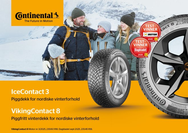 Testvinneren fra Continental kombinerer suveren ytelse på snø og is med forutsigbare kjøreegenskaper. Redusert rullemotstand og forbedret støynivå gjør at VikingContact 8 også er et utmerket valg til elbiler. Tilgjengelig i felgdiameter 15-22’’.