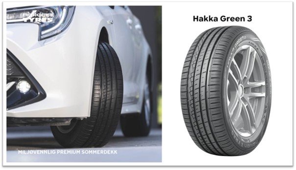 - Nokian Hakka Green 3 kombinerer sikkerhet på vått underlag med lav rullemotstand. Nokian Hakka Green 3 er utviklet for det varierende nordiske været, og kjennes sikkert og balansert på regntunge dager, samtidig som det sparer drivstoff og har høy slitestyrke. Rettet mot mindre og mellomstore familiebiler, kommer dette nye premium sommerdekket i en mengde ulike dimensjoner til hybrider og elektriske kjøretøy.